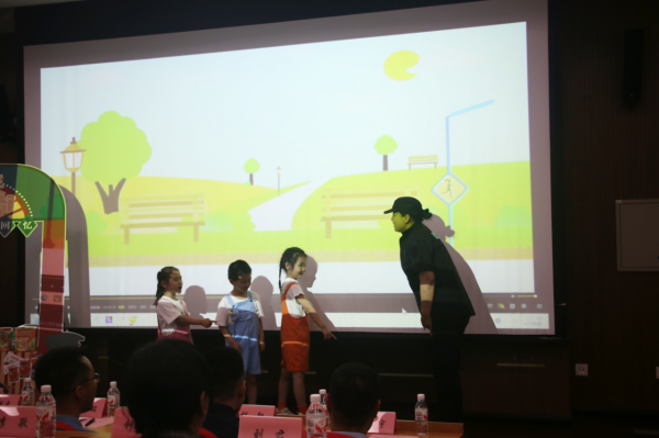 互動(dòng)提問環(huán)節(jié)中,孩子們踴躍發(fā)言,圍繞校園欺凌、網(wǎng)絡(luò)安全等熱點(diǎn)問題與大學(xué)生展開交流,在思維的碰撞中深化了對法律知識的理解。此外,幼兒園小朋友表演的《安全大闖關(guān)——不輕信陌生人》情景劇,以童真童趣的方式傳遞了自我保護(hù)的法治理念。