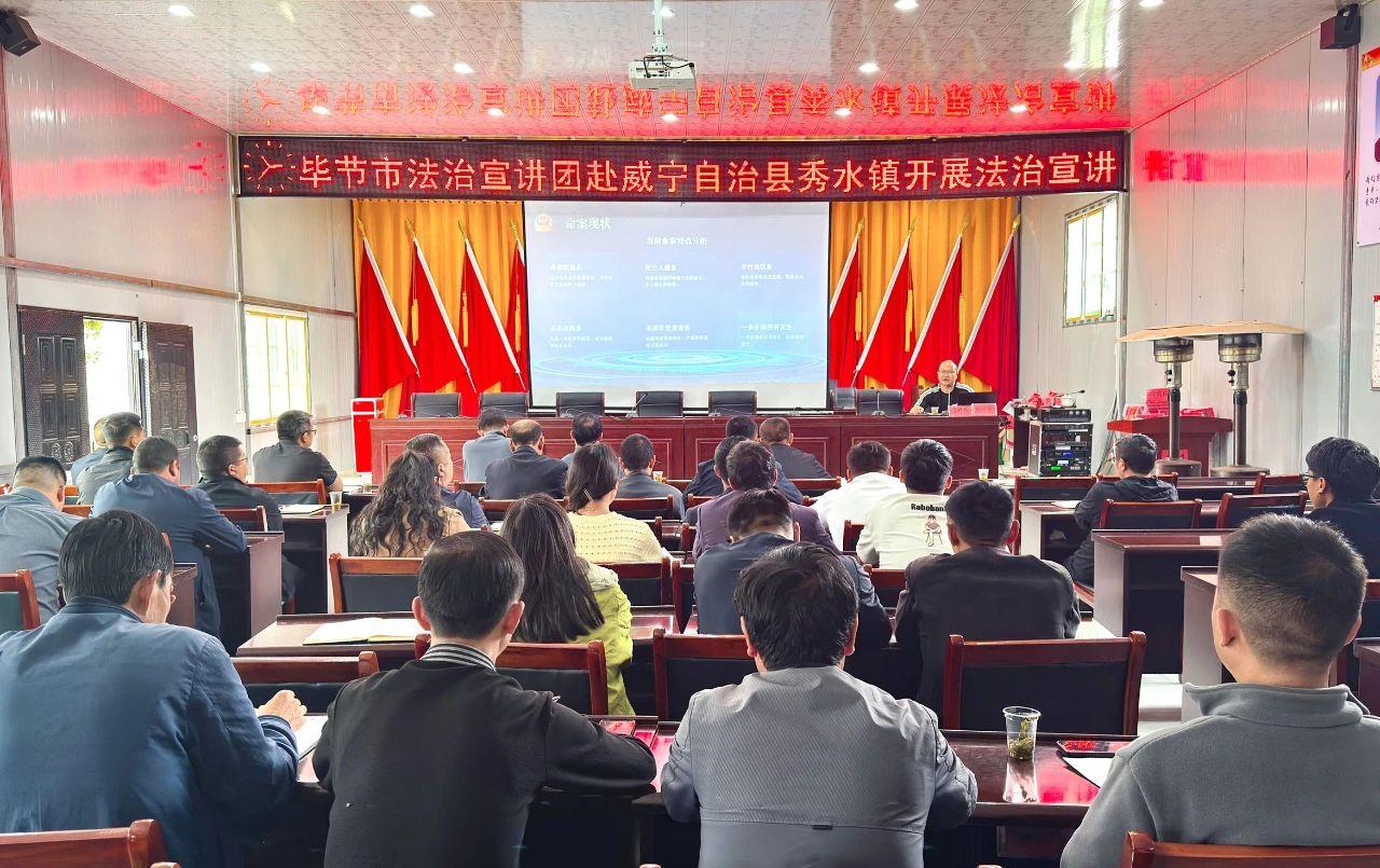 近日,由貴州省畢節(jié)市委政法委、市法學會組織的法治宣講團走進威寧自治縣觀風海鎮(zhèn)、秀水鎮(zhèn)開展法治宣講活動。畢節(jié)市委政法委、市法學會、市人民法院、市公安局及自治縣委政法委、縣法學會出席會議,觀風海鎮(zhèn)、秀水鎮(zhèn)相關(guān)負責同志及村(社區(qū))“兩委”班子近百人參與學習。通過一堂兼具專業(yè)性與實用性的法治課,為基層治理注入法治力量。