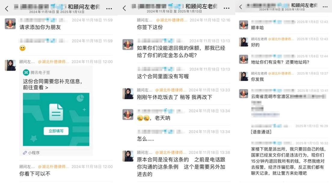2024年12月,江西客戶S女士在網(wǎng)上看到一則“代理退保”的廣告,聲稱“全額退保,不成功不收費”。因當時經(jīng)濟壓力較大,并且缺乏對黑產(chǎn)中介的了解,S女士接觸了該所謂的“專業(yè)代理機構(gòu)”。在對方的誘導(dǎo)下,客戶以“銷售誤導(dǎo)”等虛假理由投訴保險公司,要求全額退保,同時還向?qū)Ψ街Ц读?800元作為“定金”。然而后續(xù)幾天,S女士始終沒有等到對方的消息。