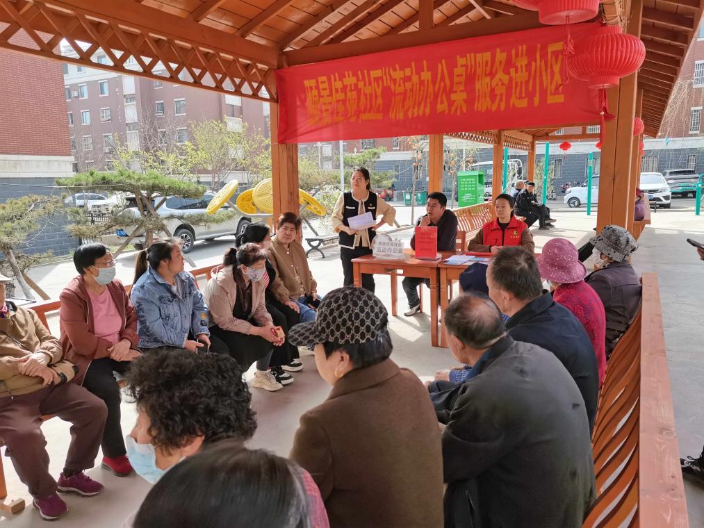 在烏海市維邦佳園小區(qū),社區(qū)、住建局、自來水公司等部門的工作人員一同通過“流動(dòng)辦公桌”為居民答疑解惑。(受訪者供圖)