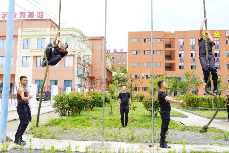 在隨后的大練兵活動中,特警隊員們開展了多項科目的訓練?!邦A(yù)備,開始!”教官一聲令下,兩名特警隊員如離弦之箭,猛地蹬地起躍,雙手緊扣垂下的繩索,腰腹與雙臂協(xié)同發(fā)力,如同矯健的壁虎迅速向上攀爬,展現(xiàn)出卓越的體能和攀爬技巧。