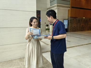 保險(xiǎn)進(jìn)企業(yè):走進(jìn)企業(yè)大樓,為大樓內(nèi)來往企業(yè)員工介紹“7.8全國公眾保險(xiǎn)宣傳日”活動(dòng),科普金融反詐知識(shí),提醒大家關(guān)注好自身權(quán)益,避免網(wǎng)絡(luò)電信詐騙。