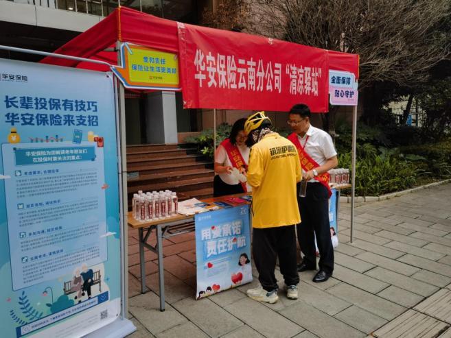 在昆明,華安保險(xiǎn)云南分公司積極開展保險(xiǎn)知識(shí)“進(jìn)社區(qū)”活動(dòng),在公司所在社區(qū)設(shè)立保險(xiǎn)“清涼驛站”,為社區(qū)群眾、新市民群體贈(zèng)送瓶裝水和防暑降溫用品,并有針對(duì)性地開展保險(xiǎn)知識(shí)宣傳和風(fēng)險(xiǎn)提示,幫助消費(fèi)者了解保險(xiǎn)銷售業(yè)務(wù)常見的風(fēng)險(xiǎn)點(diǎn)和易受誤導(dǎo)的環(huán)節(jié),客觀認(rèn)知、準(zhǔn)確理解保險(xiǎn)功能作用。