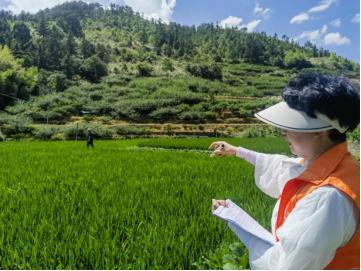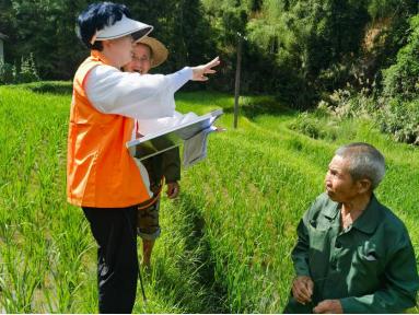 驗標員曾燕玲的背包里,全縣農險驗標分布圖已標注百余村落坐標。密密麻麻的紅點,對應著數(shù)千塊分散田地的勘驗記錄。在熾烈的陽光下,灼熱的田埂仿佛要將鞋底融化。而她和農險伙伴們依舊頂著烈日,每日步行超萬步,日均完成8個村莊的查勘驗標工作。