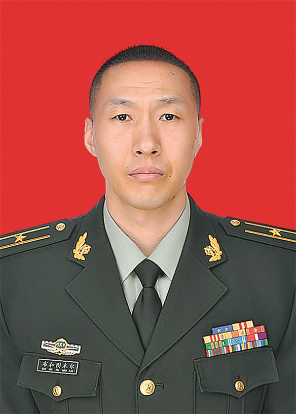 布和圖木爾,武警部隊(duì)內(nèi)蒙古自治區(qū)總隊(duì)某支隊(duì)大隊(duì)長(zhǎng)。男,蒙古族,1986年8月出生,2005年12月入伍,2007年9月入黨。該同志矢志扎根邊防、守衛(wèi)邊防,愛(ài)民助民鞏固軍政軍民團(tuán)結(jié),參與抗洪搶險(xiǎn)、火災(zāi)救援等重大任務(wù)30余次,為維護(hù)邊疆安全穩(wěn)定作出了積極貢獻(xiàn)。當(dāng)選為十四屆全國(guó)人大代表,被表彰為“全國(guó)民族團(tuán)結(jié)進(jìn)步模范個(gè)人”,獲“新時(shí)代青年先鋒獎(jiǎng)”,榮立二等功1次、三等功5次。