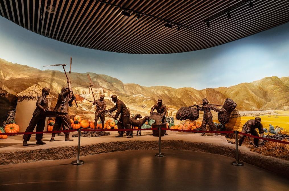 這是南泥灣大生產(chǎn)紀念館內(nèi)的雕塑作品(7月29日攝)。新華社記者 樊雨晴 攝