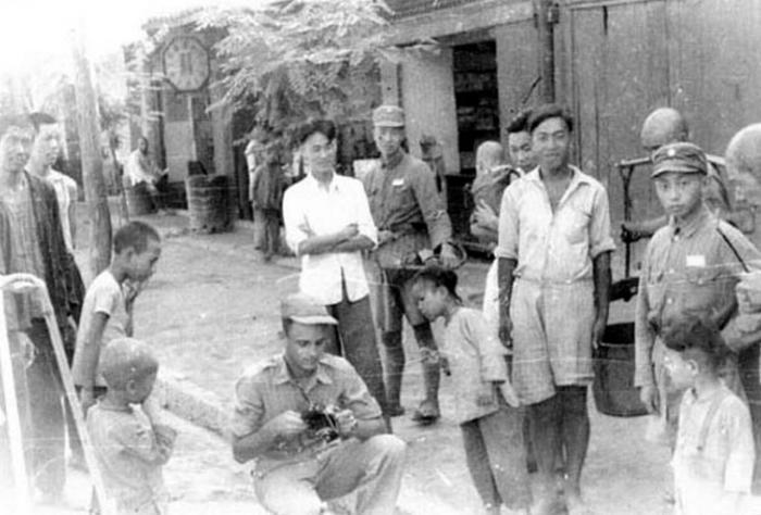美國飛行員和漢中百姓的合影。(資料圖)漢中市檔案館供圖