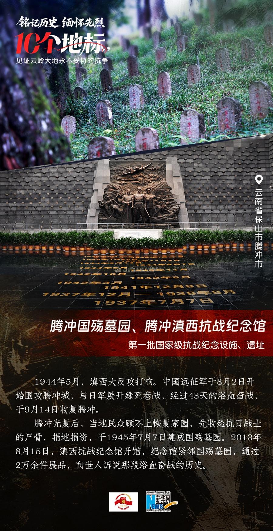 80年過去,曾經(jīng)的戰(zhàn)場硝煙雖散,但英氣永存。在國務(wù)院公布的前三批國家級抗戰(zhàn)紀(jì)念設(shè)施、遺址名錄中,云南省共有10個,分別為騰沖國殤墓園、騰沖滇西抗戰(zhàn)紀(jì)念館,龍陵抗日戰(zhàn)爭紀(jì)念館,國立西南聯(lián)合大學(xué)舊址,抗戰(zhàn)勝利紀(jì)念堂,松山戰(zhàn)役舊址,南洋華僑機(jī)工回國抗日紀(jì)念碑,怒江駝峰航線紀(jì)念館,施甸縣抗日江防遺跡群,滇緬公路惠通橋,滇西抗日戰(zhàn)爭紀(jì)念碑。它們承載著國人共同的歷史記憶與民族情感,也為我們學(xué)習(xí)和傳承抗戰(zhàn)精神提供了現(xiàn)實條件。