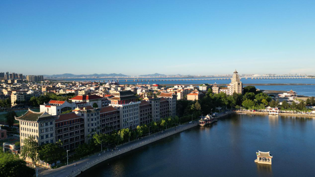 ↑福建省廈門集美中學(xué)。(無人機照片)鐘煒俊攝