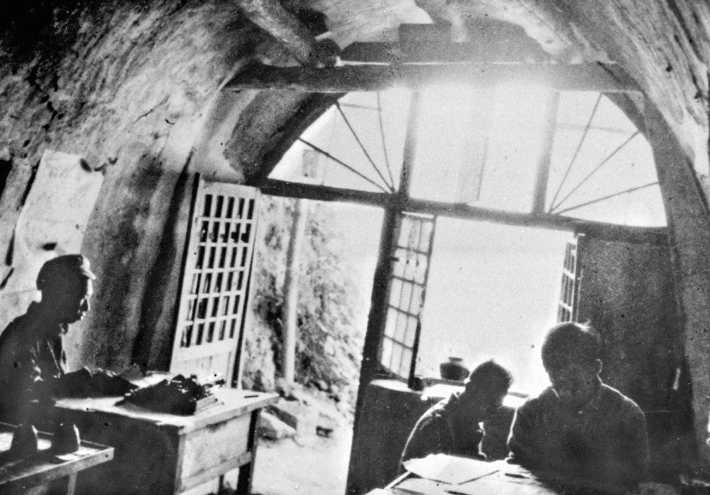 延安時期新華社編輯在窯洞內(nèi)工作。1937年1月,黨中央遷駐延安,這座城市成為敵后抗戰(zhàn)指揮中心。新華社發(fā)