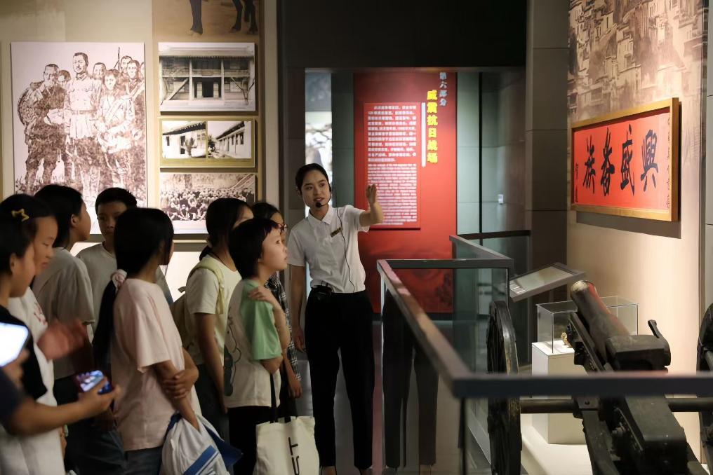 學生們在賀龍紀念館聽講解員講述紅色歷史。新華社發(fā)