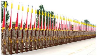 圖為戰(zhàn)旗方隊組織合練。本報通訊員 王煥斌 攝