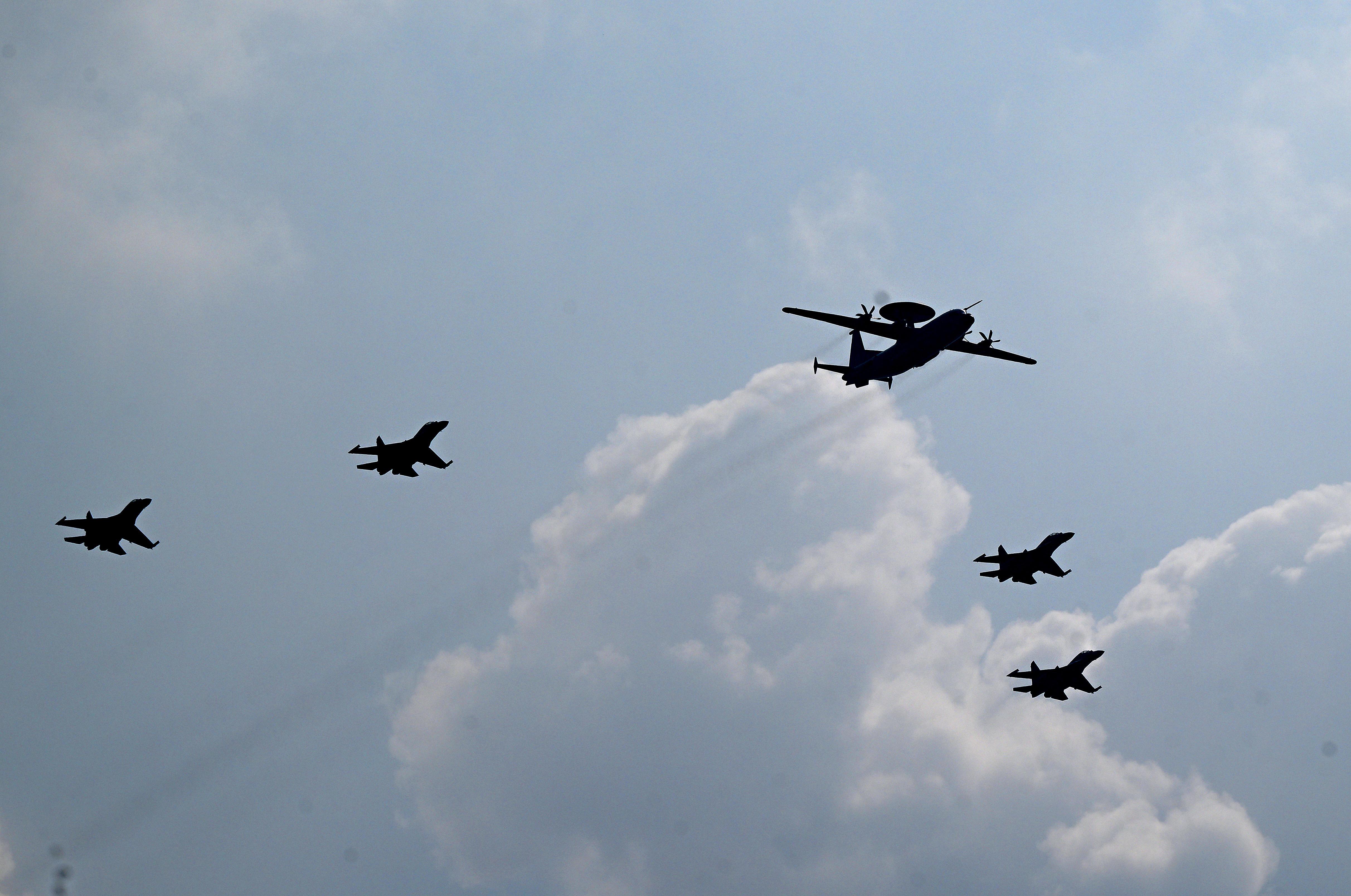 預(yù)警指揮機梯隊接受檢閱。 本報記者 楊晉峰 攝