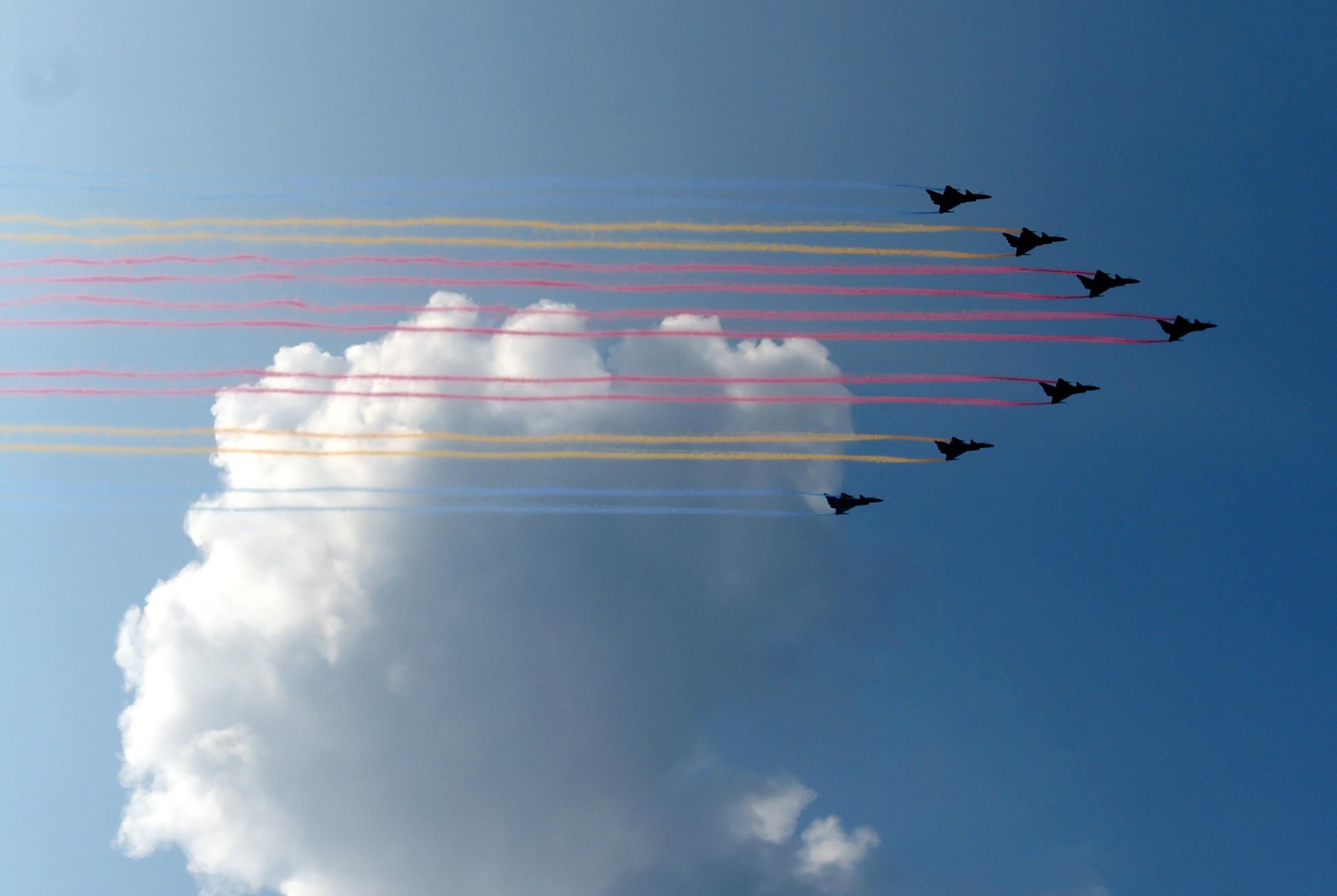 空中護(hù)旗梯隊(duì)率先亮相。