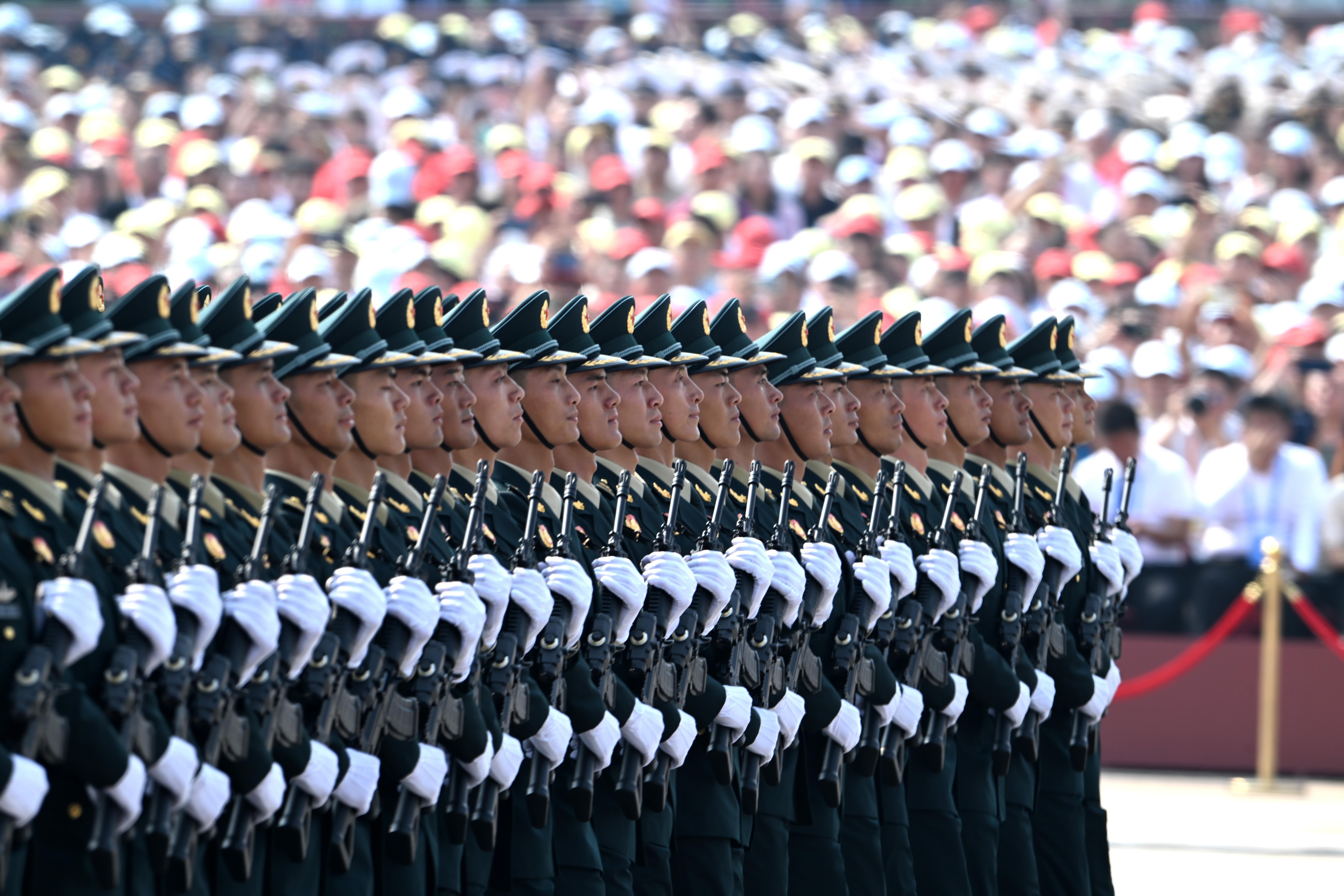 中國人民解放軍儀仗方隊(duì)接受檢閱。
