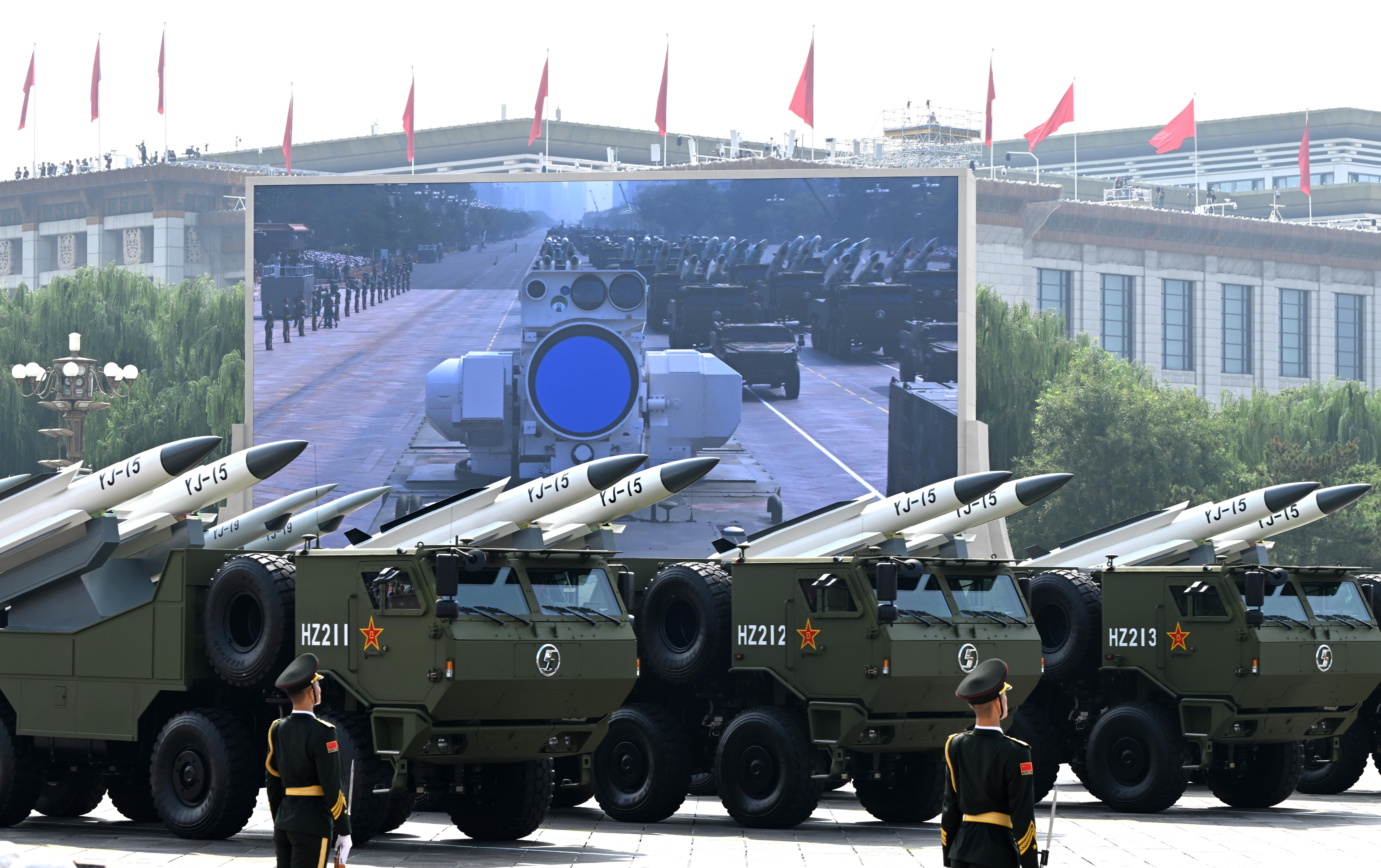 反艦導(dǎo)彈方隊(duì)接受檢閱。