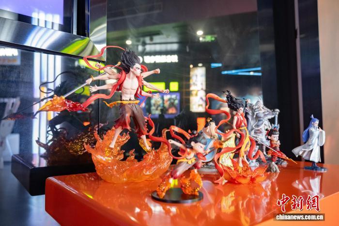天府長(zhǎng)島數(shù)字文創(chuàng)園內(nèi),《哪吒》IP衍生品展覽。趙明 攝