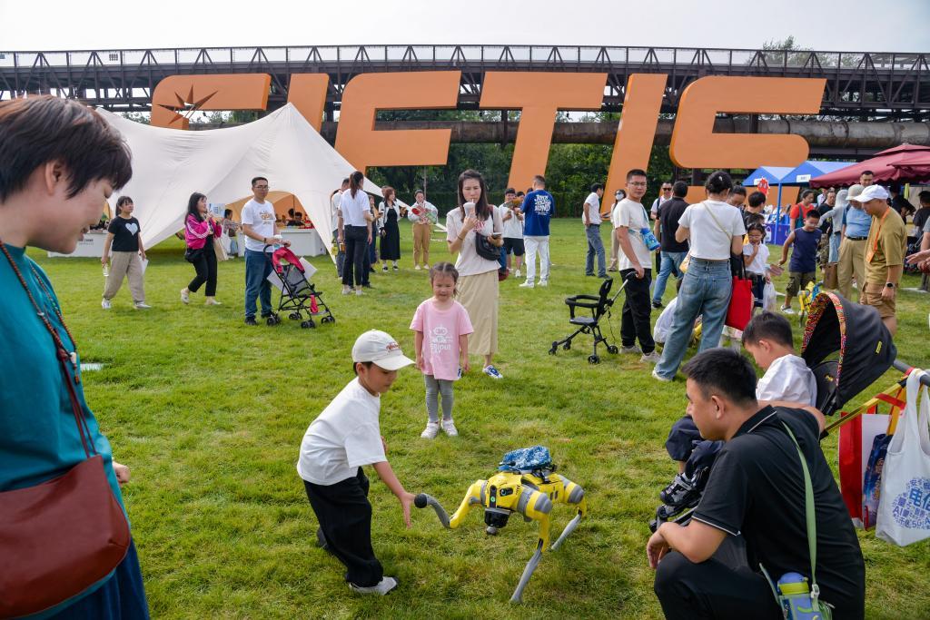 小朋友與具身智能“AI小螞ROBOT”互動(dòng)。新華社記者 徐欽 攝