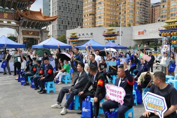 同時,昆明公安在金馬碧雞坊金碧廣場開展了形式創(chuàng)新、內(nèi)容多元的“法治日”線下宣傳活動。網(wǎng)絡(luò)安全主題視頻通過生動形象的畫面和案例吸引群眾駐足觀看,直觀感受到網(wǎng)絡(luò)安全的重要性;在“網(wǎng)絡(luò)安全知識有獎問答”環(huán)節(jié),參與者紛紛搶答,現(xiàn)場互動氛圍熱烈;“網(wǎng)絡(luò)安全宣傳周警民集體倡議”儀式有20名現(xiàn)場群眾代表上臺宣讀網(wǎng)絡(luò)安全倡議書,共同承諾自覺維護網(wǎng)絡(luò)清朗空間;反詐中心民警現(xiàn)場普法,結(jié)合最新詐騙手法和典型案例講解識別防范技巧,提醒群眾筑牢安全防線。隨后的反詐知識有獎問答再次點燃現(xiàn)場氣氛,群眾現(xiàn)學現(xiàn)用、對答如流,將主題日活動推向高潮。