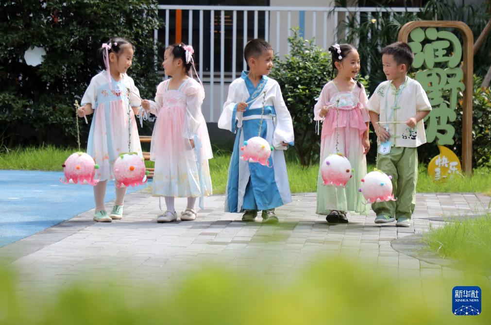 9月25日,在江蘇省蘇州市姑蘇區(qū)平潤實(shí)驗(yàn)幼兒園,小朋友提著自制中秋花燈歡樂游園。