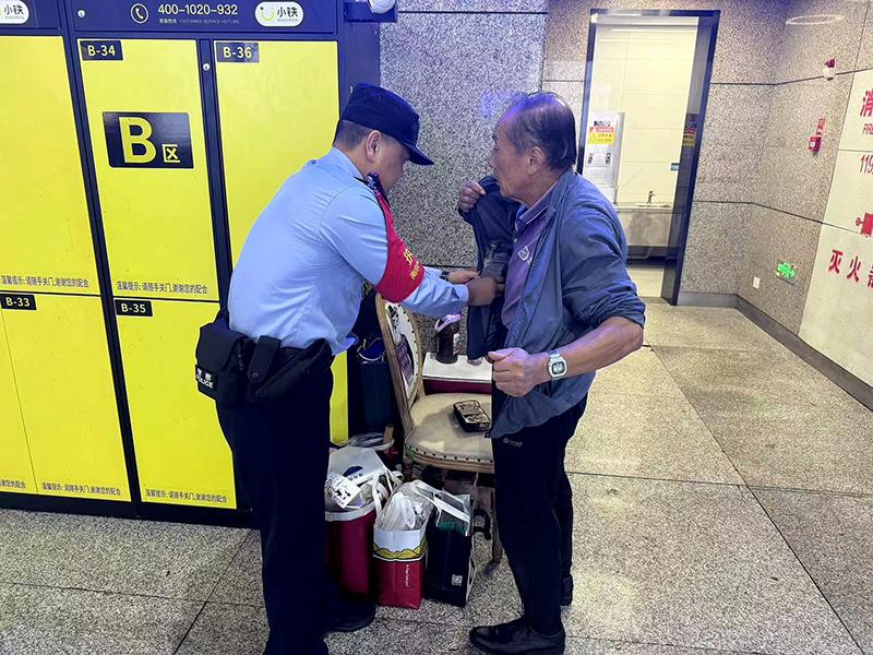 夜深了,他的身影仍在忙碌,帶領(lǐng)隊員清查車站里的陰暗角落、消防通道、停車場……仔細(xì)檢查每一個部位,清理閑雜人員,確保車站秩序平穩(wěn)。發(fā)現(xiàn)無人看管的行李,他立即查詢信息,聯(lián)系失主,親手將行李交還。這一日,他處理求助22起、調(diào)解糾紛4起、尋回物品11件,行走超過三萬步。