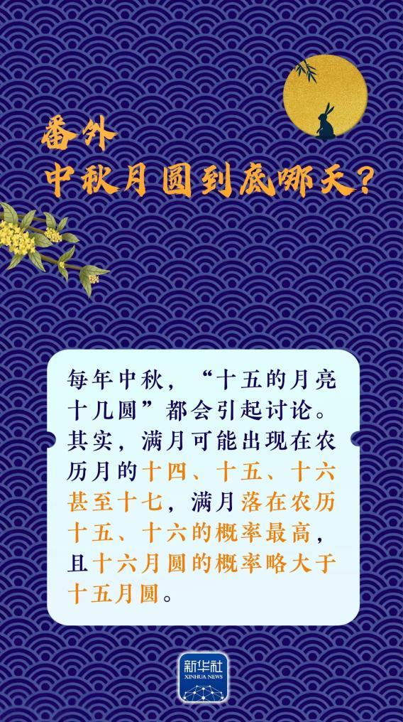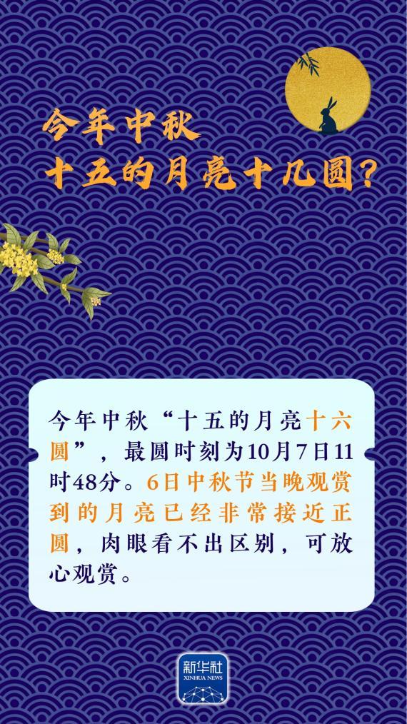 新華社南京10月4日電(記者王玨玢、邱冰清)10月6日將迎中秋佳節(jié)。這個(gè)闔家團(tuán)圓的節(jié)日,賞月是無(wú)可爭(zhēng)議的重頭戲之一。今年中秋,十五的月亮十幾圓?月亮有啥特殊看點(diǎn)?講究什么“姿勢(shì)”?還有什么“彩蛋”?請(qǐng)收下這份中秋賞月指南,科學(xué)賞月,做好攻略→