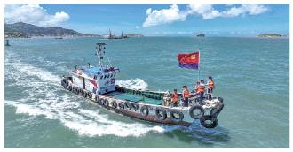 圖為浙江省岱山縣公安局羅家岙派出所民警近日乘坐“瀛洲紅帆船”開(kāi)展海上巡查。 本報(bào)通訊員 鄒訓(xùn)永 攝