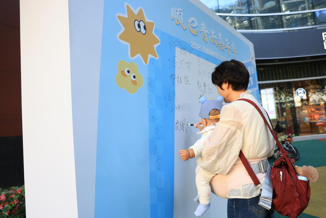 “e言e行皆風(fēng)景,e舉e動(dòng)講文明”“清朗網(wǎng)絡(luò)風(fēng),法治來護(hù)航”等一條條醒目標(biāo)語在“網(wǎng)絡(luò)普法宣言”墻上漸漸被填滿,市民朋友們手持“e法潤(rùn)京華”“順e普法嘉年華”主題KT板合影留念。在中國生活多年的外籍居民謝夫,特意趕來參與這場(chǎng)特別的“法治派對(duì)”,并在“網(wǎng)絡(luò)普法宣言”墻上寫下自己的名字?!斑@樣的活動(dòng)很有意義,能讓更多人了解怎么依法上網(wǎng)?!敝x夫說。