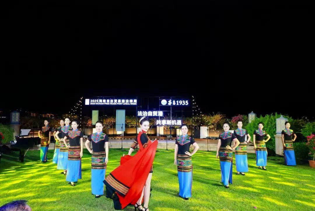 活動(dòng)中還特別設(shè)置了海南省非遺展示環(huán)節(jié)。青年舞蹈家張櫻藍(lán)老師攜手海南省律師協(xié)會(huì)舞蹈隊(duì)的女律師們,為本屆法律周精心打造了原創(chuàng)節(jié)目——《黎錦旗袍秀》,將世界級(jí)非物質(zhì)文化遺產(chǎn)“黎錦”與風(fēng)靡世界的中國(guó)旗袍完美融合,女律師們以優(yōu)雅的步伐,展示著穿越千年的黎錦之美。