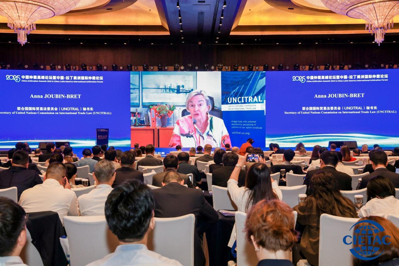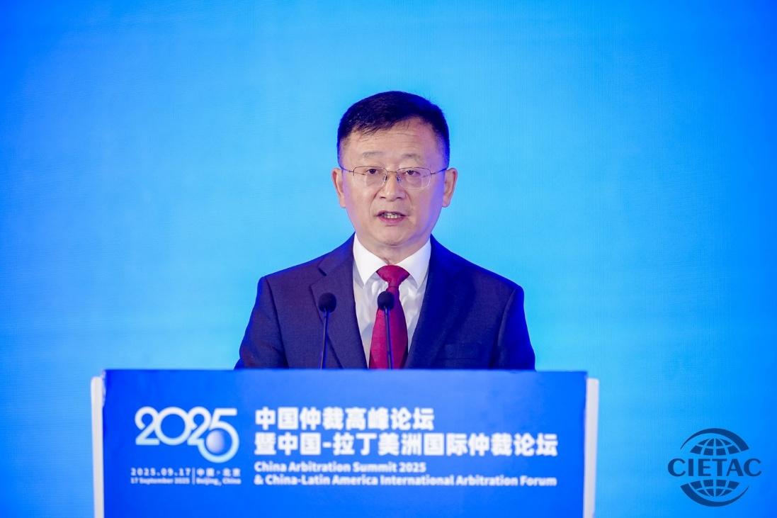 9月17日,2025中國仲裁高峰論壇暨中國—拉丁美洲國際仲裁論壇在北京舉辦。中國國際貿(mào)易促進(jìn)委員會副會長聶文慧、司法部副部長武增、最高人民法院審判委員會副部級專職委員王淑梅、環(huán)太平洋律師協(xié)會主席Michael CHU出席開幕式并致辭,聯(lián)合國國際貿(mào)易法委員會秘書長Anna JOUBIN-BRET發(fā)表視頻致辭。中國國際經(jīng)濟貿(mào)易仲裁委員會副主任兼秘書長王承杰主持論壇開幕式。