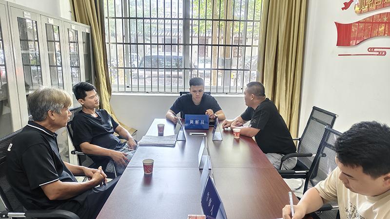 圖為5月29日,在白沙縣綜治中心先行調(diào)解室,調(diào)解員調(diào)解一起因檳榔苗采購(gòu)引發(fā)的糾紛。 白沙縣綜治中心供圖
