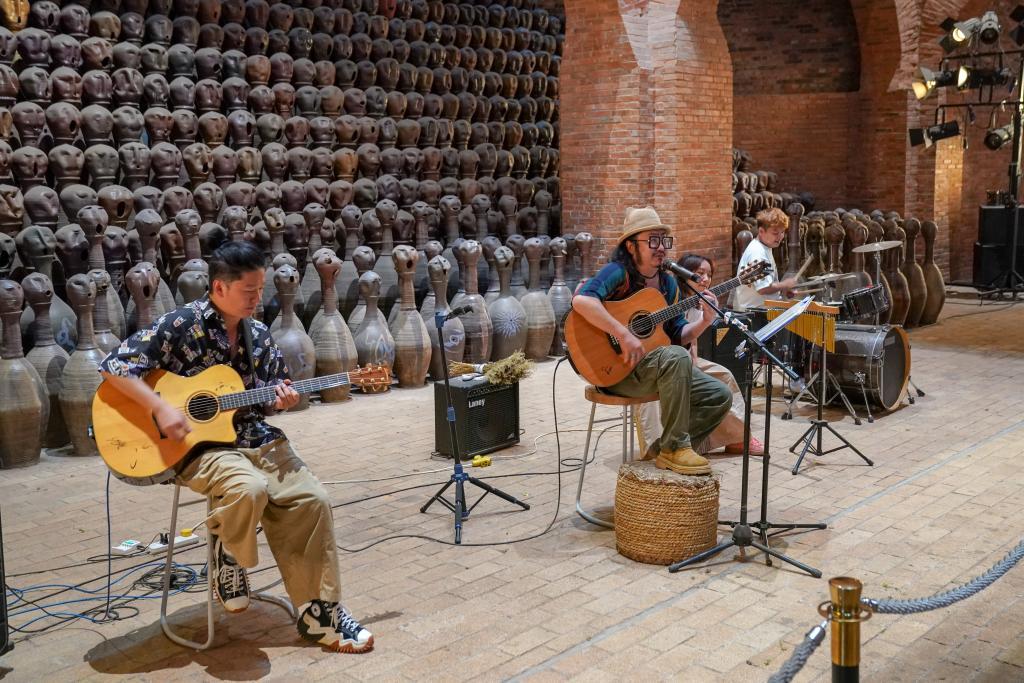 9月8日,歌手在東風(fēng)韻小鎮(zhèn)為游客表演。新華社記者 彭奕凱 攝