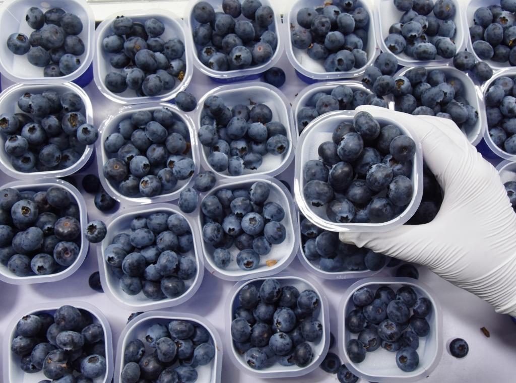 農(nóng)戶在云南省蒙自市草壩鎮(zhèn)繽紛農(nóng)業(yè)示范基地的冷藏庫里分揀藍(lán)莓。新華社發(fā)(薛瑩瑩 攝)