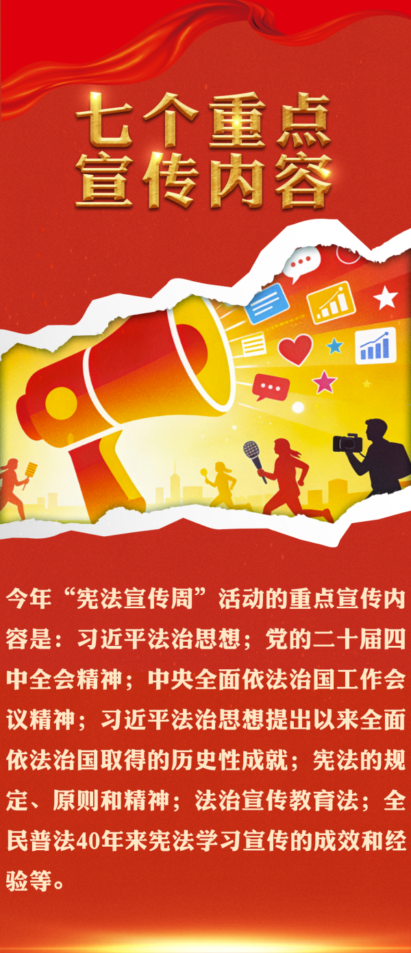 今年12月4日是第十二個國家憲法日。12月1日至7日是第八個“憲法宣傳周”,主題是“學(xué)習(xí)宣傳貫徹習(xí)近平法治思想,推動憲法深入人心”。