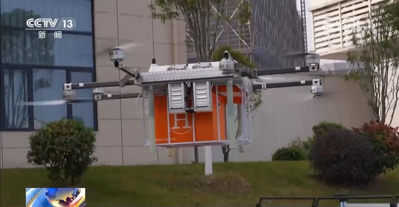 在江西上饒,隨著操作員的指令,一架停在指定泊位的無(wú)人機(jī)騰空而起,載著裝配好的水果、零食等,沿著航線,向城東飛去。十幾分鐘后,這份“無(wú)人機(jī)配送”外賣(mài)準(zhǔn)時(shí)送到了收件人手中。