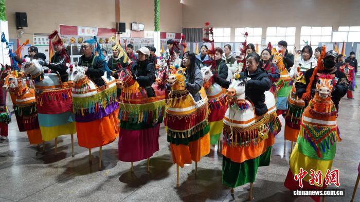 “今年我們精挑細選出50名高蹺竹馬戲的演員,首次和儺舞一起配合、排練,把兩種非遺表演融合到一起,給大家呈現(xiàn)不一樣的效果?!鄙轿魇∈〖壏沁z代表性項目“壽陽竹馬”代表性傳承人、壽陽縣罕山高蹺竹馬戲藝術(shù)團團長郭永虎告訴記者。