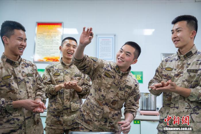 臨近元宵節(jié),武警廣西總隊桂林支隊精心組織猜燈謎、包湯圓、親情通話等暖心活動,讓官兵們在祥和氛圍中歡度佳節(jié),進一步凝聚軍心、增進戰(zhàn)友情。圖為武警官兵在食堂內制作湯圓餡料。戴申澳 攝