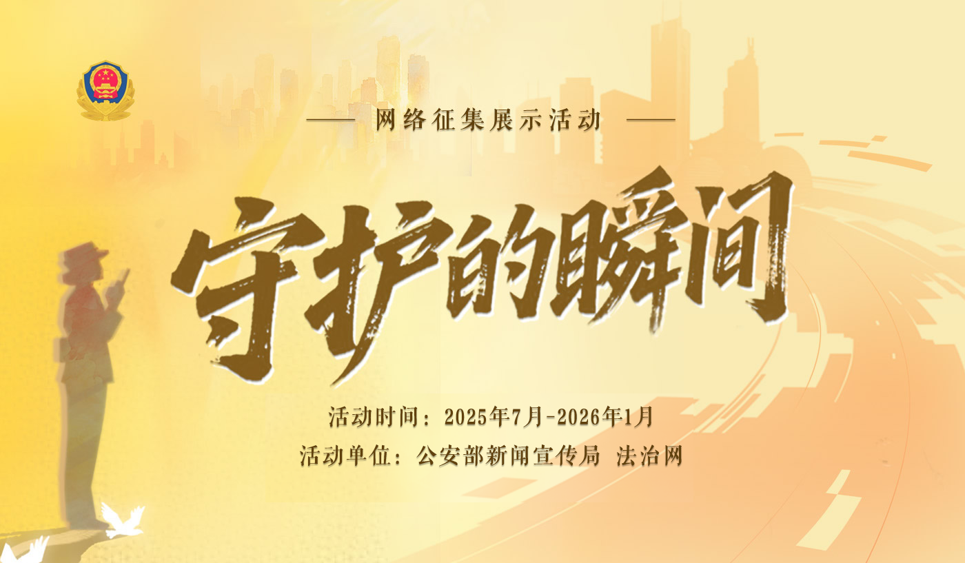 由公安部新聞宣傳局、法治網(wǎng)聯(lián)合開展的“守護的瞬間”網(wǎng)絡征集展示活動于7月3日啟動,面向全社會征集公安機關忠誠履職盡責、熱忱為民服務、規(guī)范文明執(zhí)法和打擊違法犯罪的感人瞬間...【詳情】