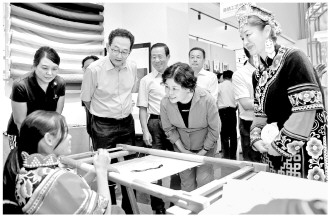全國(guó)人大常委會(huì)非物質(zhì)文化遺產(chǎn)法執(zhí)法檢查組在云南楚雄彝繡數(shù)字文化產(chǎn)業(yè)園彝繡產(chǎn)品交易中心進(jìn)行實(shí)地檢查。