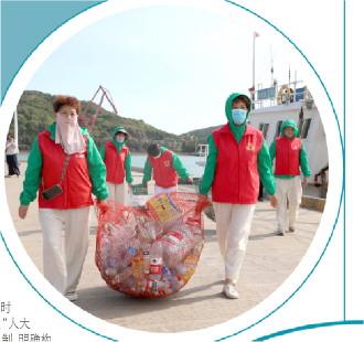 浙江舟山“東海漁嫂”巡邏隊活躍在海岸線上,深入開展海上垃圾回港分類行動。 袁浩程 攝