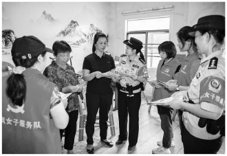 今年以來(lái),廣東省興寧市公安局徑南派出所以擦亮忠誠(chéng)的本色、平安和諧的底色、愛(ài)民法治的特色“三色”為思路引領(lǐng),錨定創(chuàng)建全國(guó)“楓橋式公安派出所”目標(biāo),積極探索構(gòu)建全時(shí)空守護(hù)平安、零距離服務(wù)群眾、多元化化解矛盾工作機(jī)制,全力提升派出所警務(wù)工作效能。圖為徑南派出所紅楓女子服務(wù)隊(duì)入戶宣傳反詐、禁毒等知識(shí)。