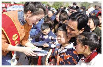 圖為恩施州政府工作人員向群眾宣傳保障農(nóng)民工工資支付相關(guān)法律法規(guī)。 恩施州司法局供圖