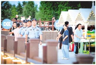 7月18日晚,2023烏巾蕩啤酒龍蝦節(jié)在江蘇大公園(興化)正式開幕,現(xiàn)場1040個(gè)座位座無虛席。為了守護(hù)夏日煙火氣,護(hù)航本地夏日經(jīng)濟(jì),興化市公安局提前謀劃周密部署,每日出動警力150余人次,以“定人、定崗、定責(zé)”工作原則,確?;顒影踩行蜻M(jìn)行。圖為執(zhí)勤警力在現(xiàn)場巡邏。