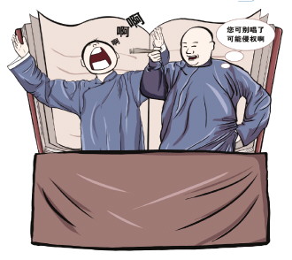 除此之外,李士強(qiáng)發(fā)現(xiàn),相聲傳統(tǒng)的表演形式?jīng)Q定了相聲是著作權(quán)爭(zhēng)議的高發(fā)區(qū)。相聲自誕生以來,“學(xué)唱”就是相聲藝人的基本表演技能,許多相聲段子中含有“學(xué)唱”的內(nèi)容,更有以“學(xué)唱”為主的相聲作品,現(xiàn)行法律體系不能給相聲藝人提供更好的“避風(fēng)港”,因此,相聲表演中的“學(xué)唱”,如無歌曲權(quán)利人的許可或法定免責(zé)事由,均涉嫌侵犯他人著作權(quán)。