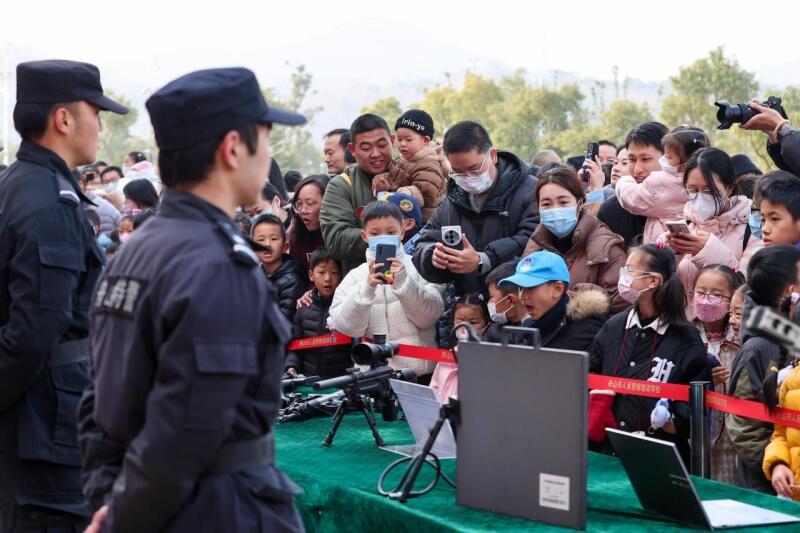 警察節(jié)到來(lái)之際,浙江省舟山市公安局近日在市綜合警務(wù)訓(xùn)練基地舉行警營(yíng)開(kāi)放日活動(dòng),市民現(xiàn)場(chǎng)零距離體驗(yàn)警務(wù)裝備以及觀看警用無(wú)人機(jī)、警用摩托車、重裝防爆小隊(duì)技戰(zhàn)術(shù)等科目表演。圖為市民零距離體驗(yàn)警務(wù)裝備。