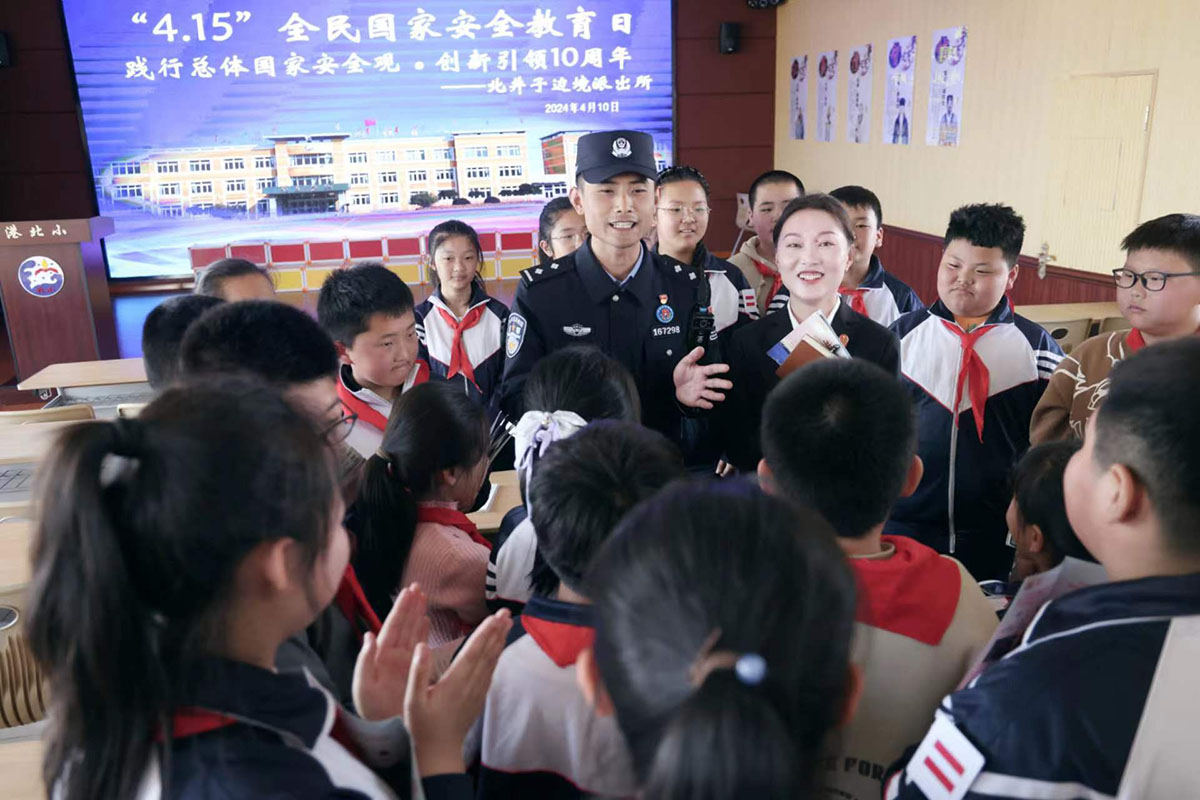 近日,遼寧出入境邊防檢查總站丹東邊境管理支隊北井子邊境派出所聯(lián)合黨建共建單位,深入轄區(qū)學(xué)校,開展普法宣傳。圖為民警與法院工作人員為學(xué)生普及防范校園欺凌相關(guān)法律知識。