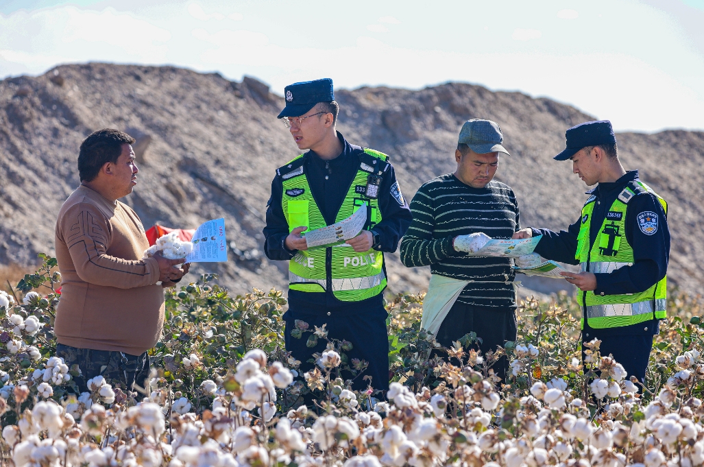 近日,烏魯木齊鐵路公安局喀什公安處在鐵路沿線轄區(qū)開(kāi)展“秋收話安全·田間送宣傳”主題普法宣傳活動(dòng),向村民宣傳鐵路安全知識(shí)、反詐常識(shí)等,提升群眾的反詐、安全意識(shí)。圖為民警向村民講解鐵路安全知識(shí)。