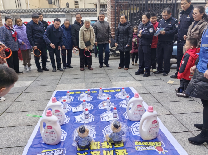 為提升群眾識騙防騙能力,江西省遂川縣公安局近日在社區(qū)廣場開展趣味反詐系列活動,以更接地氣、更貼近群眾的方式,將反詐知識傳遞給群眾。圖為群眾參與反詐“套圈”游戲。