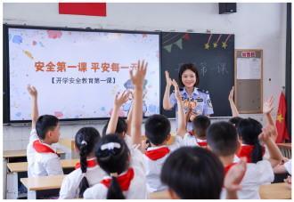 9月1日,開(kāi)學(xué)首日,江蘇省常州市公安局鐘樓分局北大街派出所組織民警走進(jìn)覓渡橋小學(xué),開(kāi)展“開(kāi)學(xué)安全教育第一課”法治宣講活動(dòng)。圖為民警在課堂上與學(xué)生們互動(dòng)。