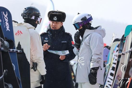 近日,新疆出入境邊防檢查總站阿勒泰邊境管理支隊(duì)吐?tīng)柡檫吘撑沙鏊窬哌M(jìn)可可托海國(guó)際滑雪場(chǎng),全力護(hù)航轄區(qū)旅游平穩(wěn)有序。圖為民警在雪場(chǎng)對(duì)游客進(jìn)行安全提醒。 本報(bào)記者 潘從武 本報(bào)通訊員 石曉坤 攝